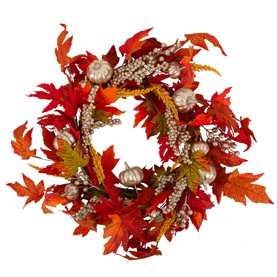 2. Couronne "promenons-nous dans les bois" dégradé d'orange et paillettes champagne - Ø 50 cm