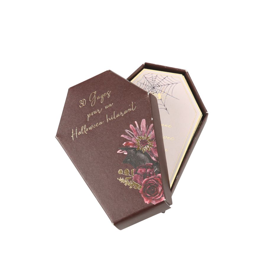 Découvrez le Jeu de 30 Gages Cercueil Witchyland en Papier, l'accessoire idéal pour animer l'anniversaire de votre enfant avec une touche de magie et de mystère. Plongez dans l'univers envoûtant de Witchyland grâce à ce jeu amusant comprenant 30 gages, chacun plus surprenant que le précédent, pour des fous rires garantis. Son design en forme de cercueil ajoute une ambiance ensorcelante à votre fête, captivant petits et grands.
