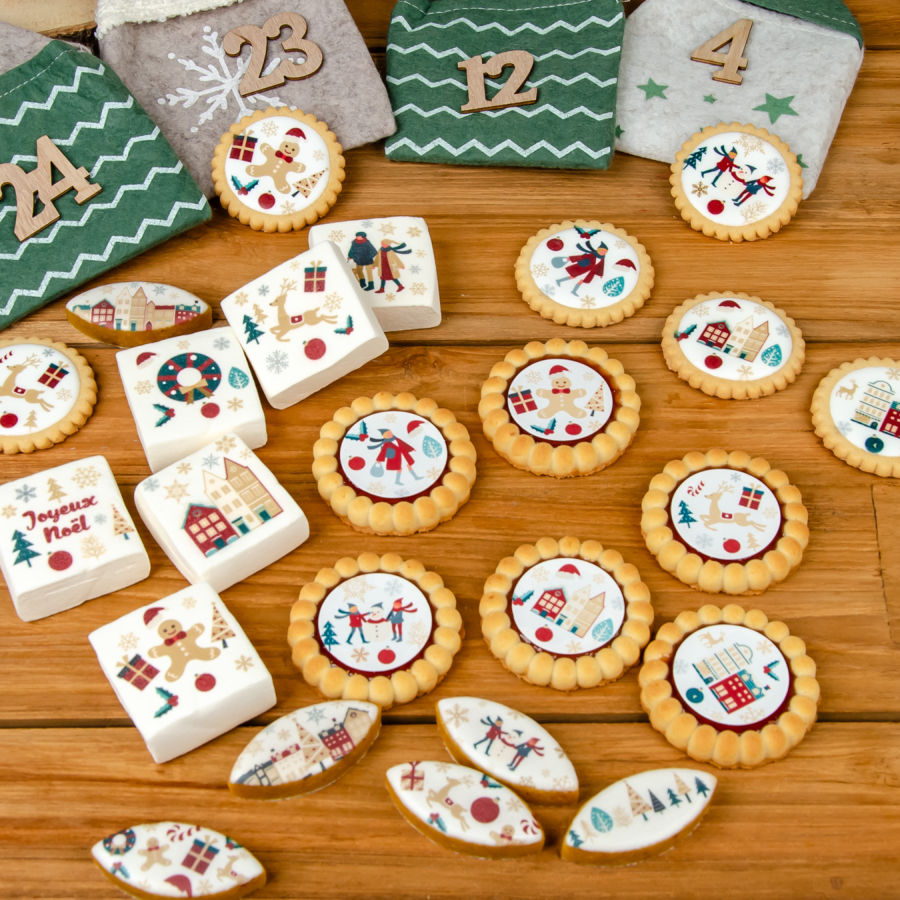 Il réunit 24 gourmandises aux jolis motifs de Noël : 6 biscuits, 6 calissons, 6 guimauves et 6 tartelettes fraise. Un concentré de plaisir et de magie pour patienter jusqu’à Noël !