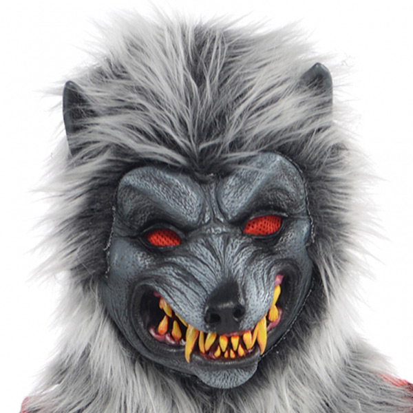 Un super déguisement de teen loup garou pour junior ou ado, avec une tunique à fourrure intégrée, les gants "pattes velues" assorties, et surtout un irrésistible masque loup garou intégral, mi-fourrure mi-latex, avec un sourire aux crocs d'enfer !