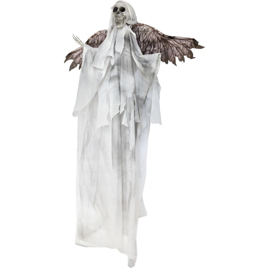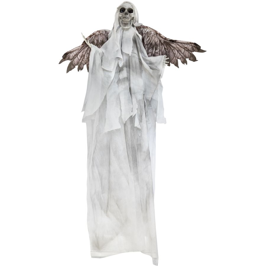 Amenez une touche de mystère à votre décor d'Halloween avec notre Ange Squelette Démoniaque Animé à Suspendre ! Mesurant 1,80 m de haut, cet effrayant personnage à suspendre est un vrai spectacle pour les yeux curieux. Équipé d'yeux rouges LED lumineux et d'ailes mobiles, il transporte votre maison dans l'ambiance d'Halloween avec ses effets sonores terrifiants de cris et rires effrayants, activés par le son et le mouvement.