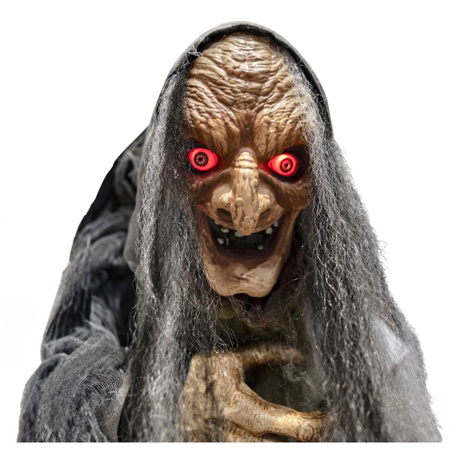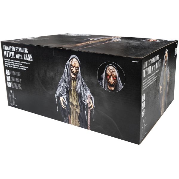 Transformez votre fête en un véritable spectacle avec cette Sorcière Animée avec Canne de 1,60 mètre. Parfaite pour épater les petits et grands, elle saura donner vie à votre décor grâce à ses yeux rouges LED lumineux et sa tête qui bouge d'avant en arrière. Activez-la par le son ou le mouvement pour découvrir ses cinq sons différents qui émerveilleront vos invités.