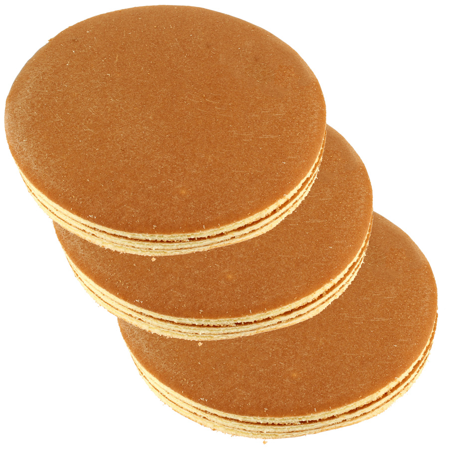 Diamètre tranches : 26 cm, hauteur de chaque tranche : environ 1.3 cm, hauteur totale : environ 4 cm, poids : 405 g.