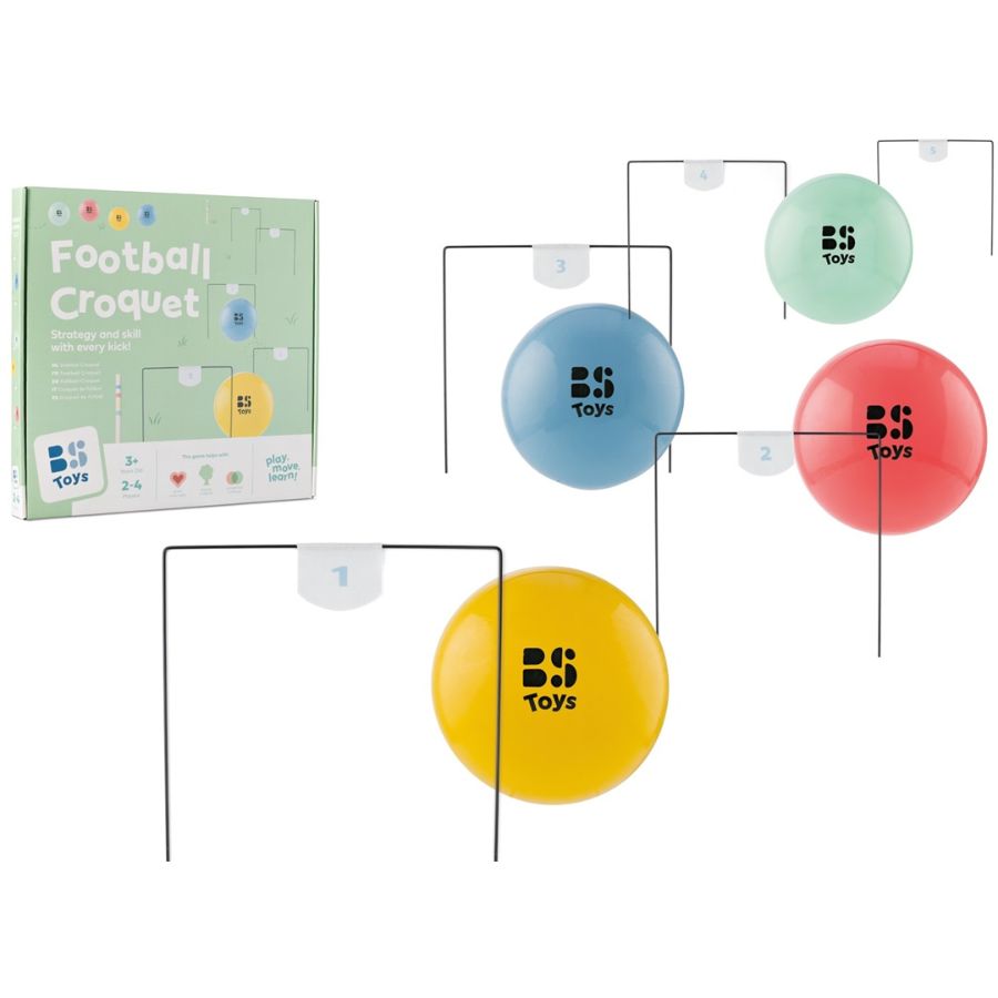 Découvrez le Football Croquet, un jeu unique qui combine le plaisir du football et l'adresse du croquet, parfait pour une journée divertissante en famille ! Ce set complet inclut 5 arceaux, 4 balles non gonflées, une pompe pratique et 2 piquets marquant le départ et l'arrivée. Adapté pour tout type de terrain, ce jeu stimulera les loisirs extérieurs de vos enfants.