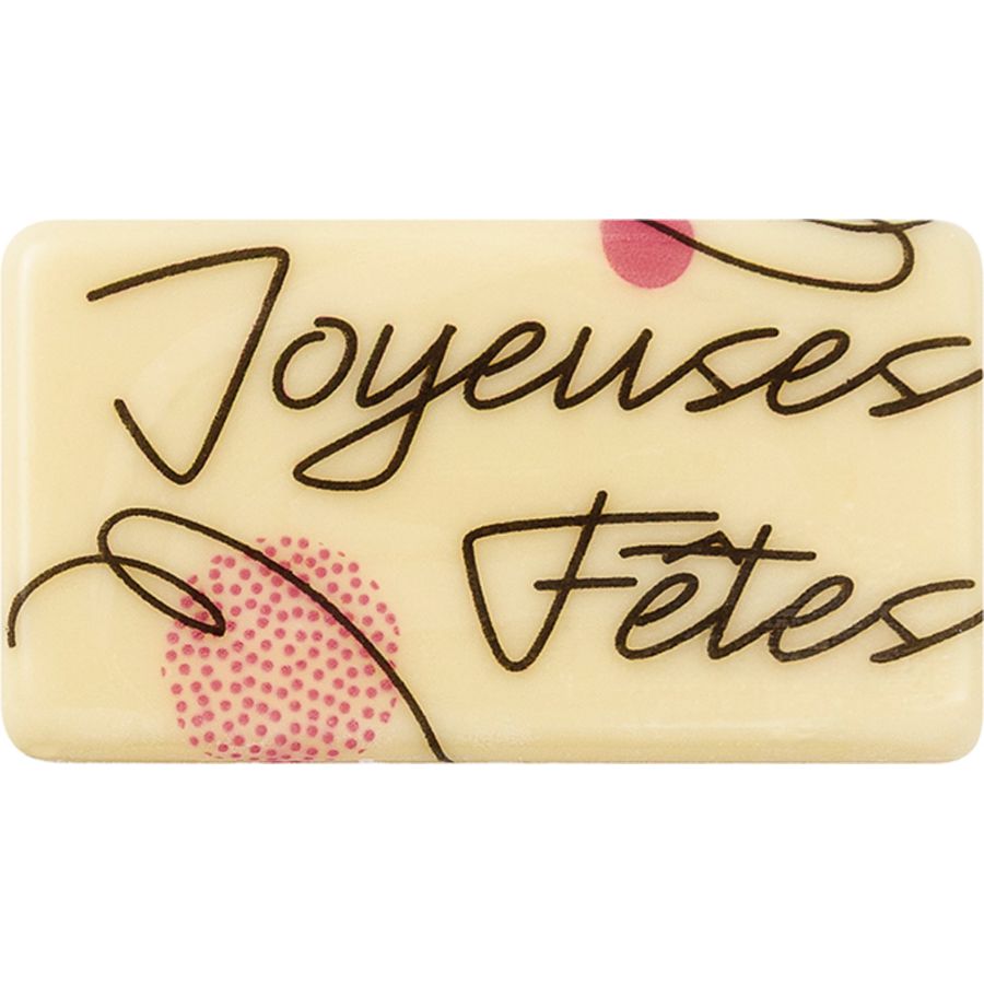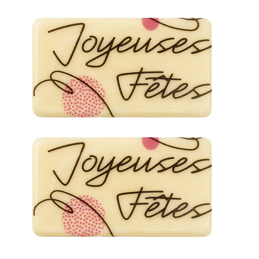 Ces délicieuses plaquettes "Joyeuses Fêtes Surprises" en chocolat blanc raviront les papilles des petits et grands gourmands. Confectionnées à partir de 95 % de chocolat blanc, elles sont parfaites pour célébrer les fêtes avec douceur. Un cadeau original pour une décoration de table festive qui émerveillera les enfants avec ses jolies couleurs et son goût exquis.