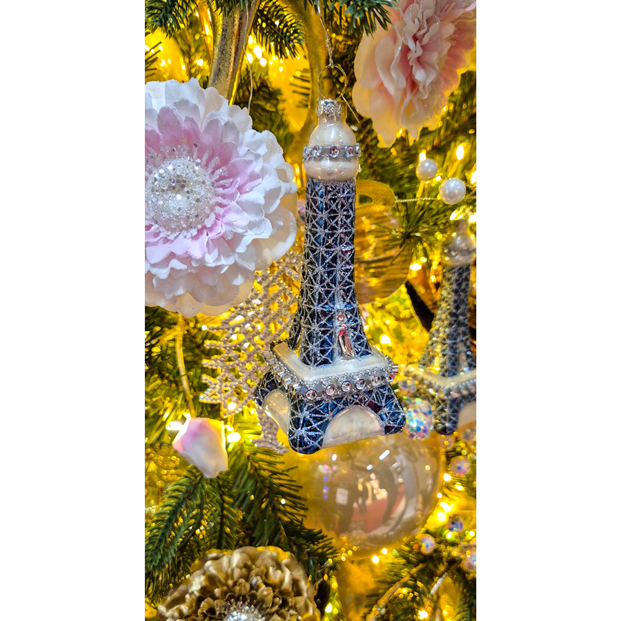 Offrez une touche de magie parisienne à votre sapin avec notre Suspension sapin Tour Eiffel – Verre Paillettes. Ce magnifique ornement en verre, décoré de paillettes scintillantes, transforme chaque rayon de lumière en un moment d’émerveillement pour les petits comme pour les grands. Son design élégant et raffiné fait de chaque sapin un chef-d'œuvre étincelant qui émerveille les yeux.