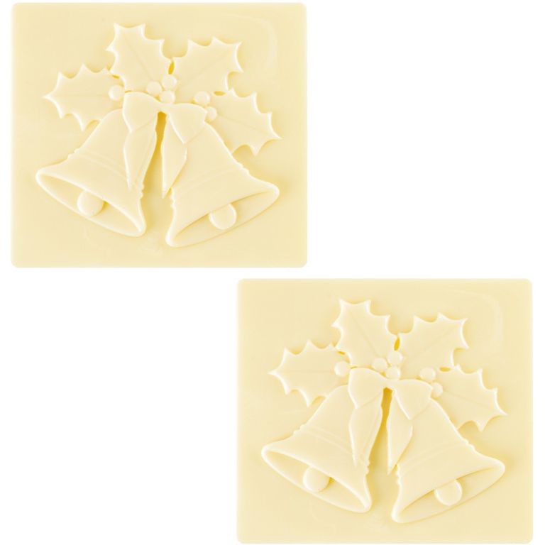 Transformez vos créations pâtissières avec notre ensemble de 2 Embouts de Bûche Cloches de Noël en Chocolat Blanc. Parfaits pour apporter une touche de magie et d'élégance à vos desserts de fêtes, ces embouts sont à la fois délicieux et esthétiques. Mesurant 9 x 8 cm, ils s'adaptent à merveille sur vos bûches pour enchanter petits et grands gourmands.