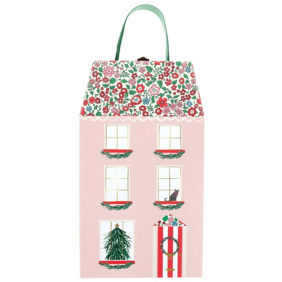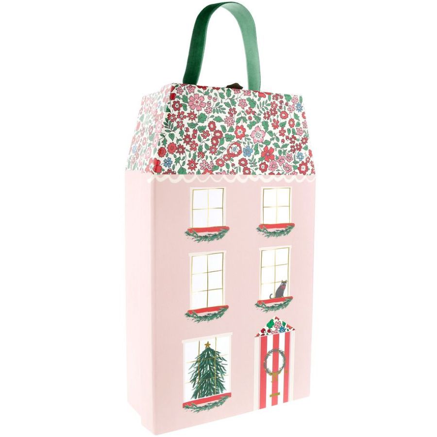 Surprenez votre enfant avec le Calendrier de l’Avent Bracelet Charms Liberty ! Cette magnifique boîte en papier laminé, délicatement conçue en forme de valise, fait penser à une élégante maison, avec son toit à imprimé fleuri Liberty et ses détails en feuille d’or mat. Dotée d’une poignée en ruban de velours vert et d’un fermoir en laiton vieilli, elle attire l’œil des petits comme des grands, et promet un véritable enchantement tout au long de l’Avent.