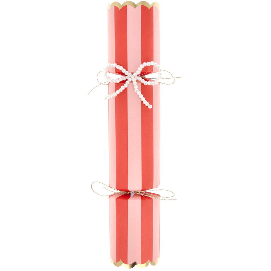 Ces crackers rayés rouges et roses, ornés de noeuds avec fines perles sur fil doré amovibles, sont non seulement un délice pour les yeux, mais aussi des objets de décoration élégants pour le sapin. Avec des bordures festonnées en papier doré brillant, chaque cracker mesure 5,1 x 24,1 x 5,1 cm. Un produit signé Meri Meri, reconnu pour sa créativité et sa qualité, parfait pour faire briller vos fêtes et émerveiller petits et grands !