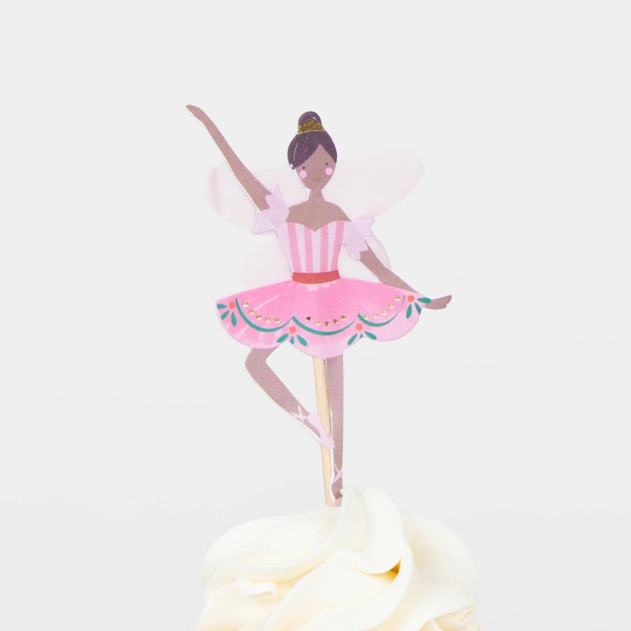 Décorez les cupcakes de votre enfant avec notre Kit 24 Caissettes et Décorations Ballet Casse-Noisette de Meri Meri. Ce ravissant ensemble inclut 24 caissettes à cupcakes aux rayures entrainantes de rose, rouge et blanc, apportant une ambiance féérique à chaque bouchée. Enflammez l'imaginaire de votre enfant avec les décorations ballerine rose, enrichies d'ailes en papier rose clair et ornées de détails en feuille d'or brillant, pour un effet vraiment merveilleux.