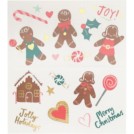 Découvrez notre pack exclusif de 2 Planches de Tatouages – Pain d'Épices, spécialement conçu pour enchanter les enfants et ravir leurs mamans lors des fêtes et occasions spéciales. Ces planches festives comportent 21 tatouages temporaires, mettant en scène des personnages en pain d'épices et des maisons sucrées, avec une touche colorée grâce à des cannes de bonbons. Ces designs tendance transformeront chaque moment en véritable festin visuel pour vos petits.