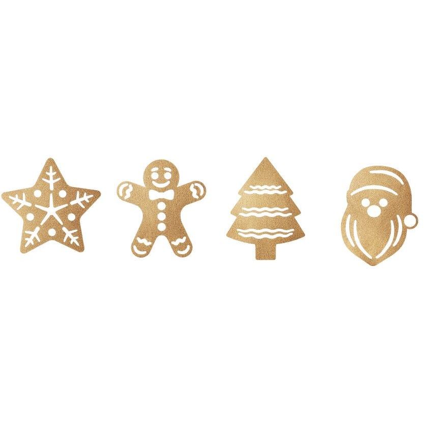 Appréciez la délicatesse de nos motifs soigneusement façonnés : du bonhomme en pain d'épices (L 3,5 x H 3,9 cm) au sapin féerique (L 3,1 x H 4 cm), sans oublier l'irrésistible étoile (L 4 x H 4 cm) et bien sûr, le Père Noël (L 3 x H 3,9 cm). Laissez libre cours à votre imagination et créez des moments magiques autour de vos délicieuses pâtisseries!