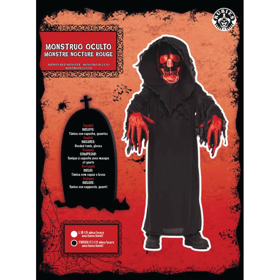 Transformez la prochaine fête costumée de votre enfant en une aventure inoubliable avec le Déguisement Monstre Nocturne Taille 11-13 Ans. Ce costume comprend une impressionnante robe noire longue avec une capuche intégrale arborant un visage terrifiant pour un effet effrayant garanti. Ses manches en lambeaux ajoutent une touche de mystère tandis qu'une paire de gants rouge complète ce look saisissant.