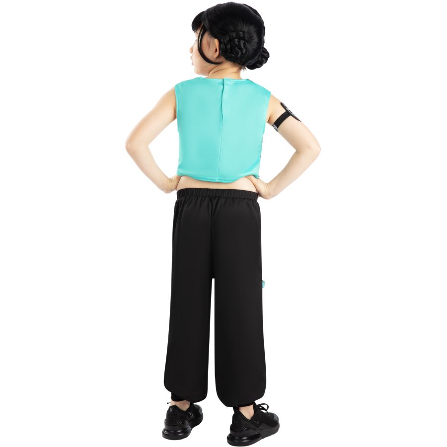 Éveillez la star qui sommeille en votre enfant avec le Déguisement K-Pop Core Zoey. Ce costume tendance comprend un top sans manches et un pantalon cargo en jersey, parfaits pour se démarquer lors des fêtes ou des spectacles scolaires. Accompagné d'une élégante pochette imprimée avec bande élastique pour le bras, votre enfant sera prêt à conquérir la scène avec style !