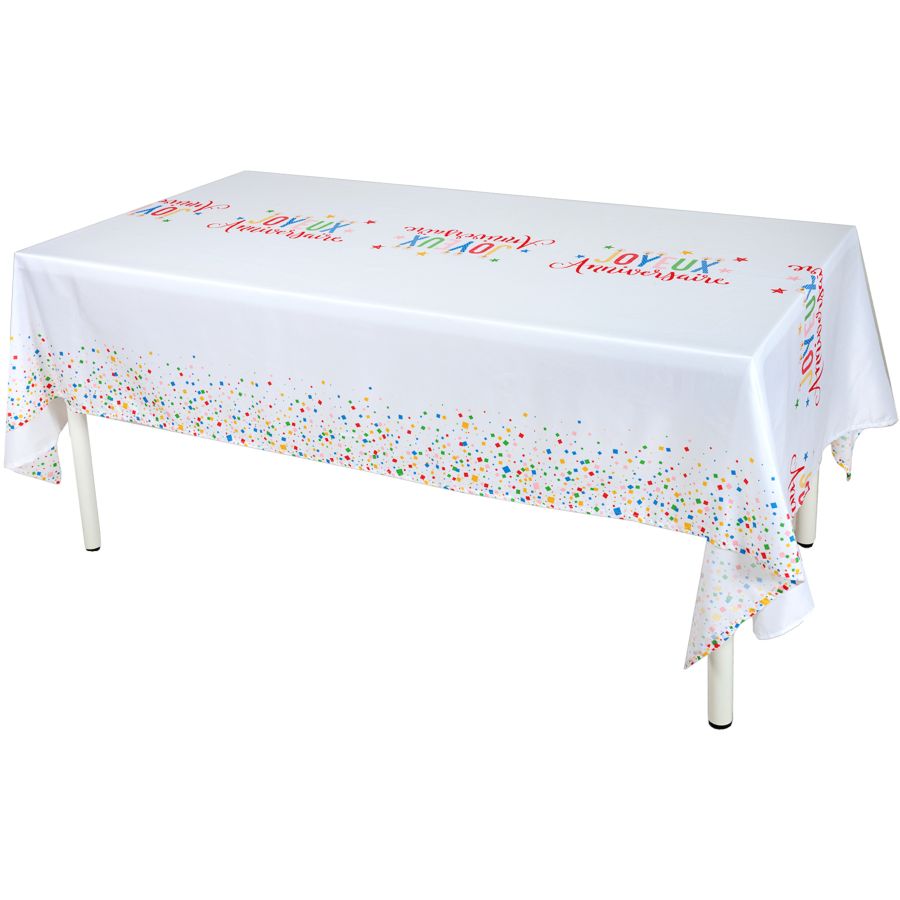 Découvrez la Nappe Anni' Festy à travers notre galerie de photos : l'image principale révèle toute sa splendeur et sa capacité à sublimer votre décor. Ajoutez cette nappe à votre collection d'accessoires pour fêtes et faites de chaque instant une occasion unique de célébrer avec style et joie. Parfaite pour les fêtes d'anniversaire, elle captive l'oeil des petits comme des grands et apporte une ambiance chaleureuse et conviviale à vos réunions familiales.