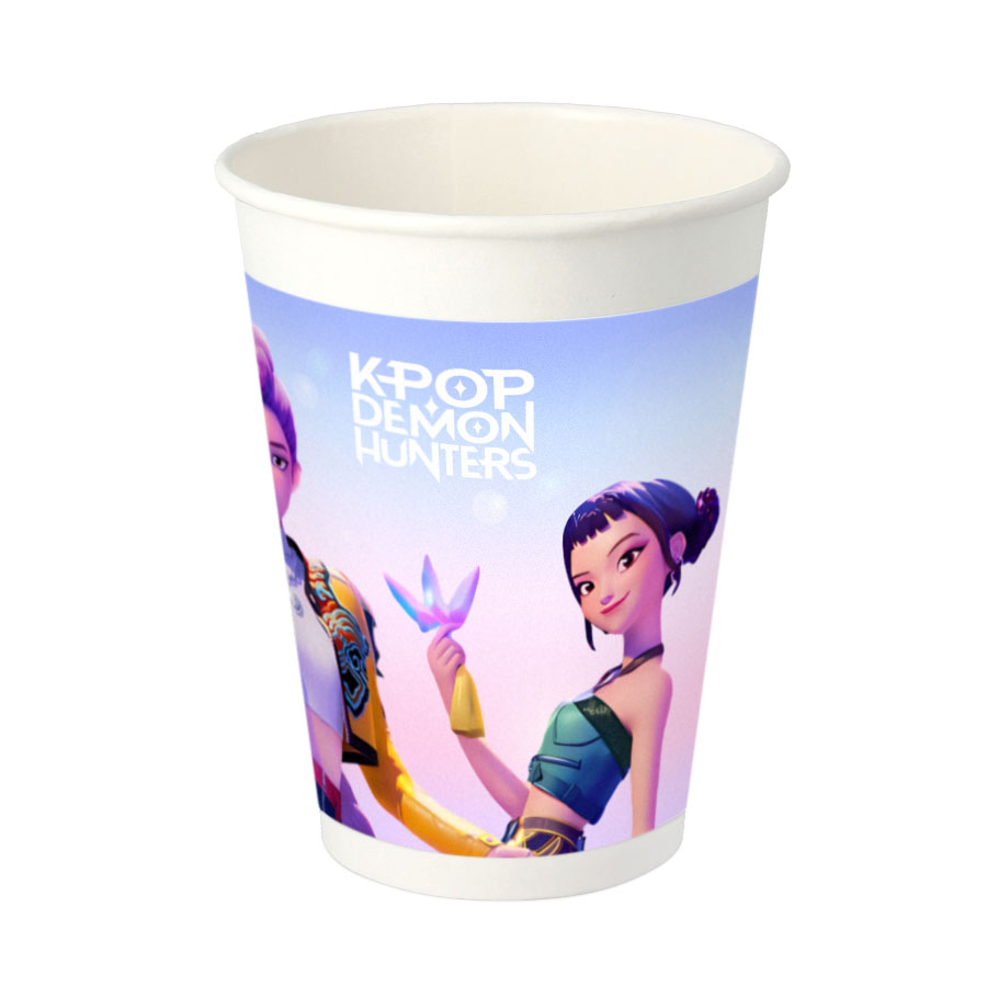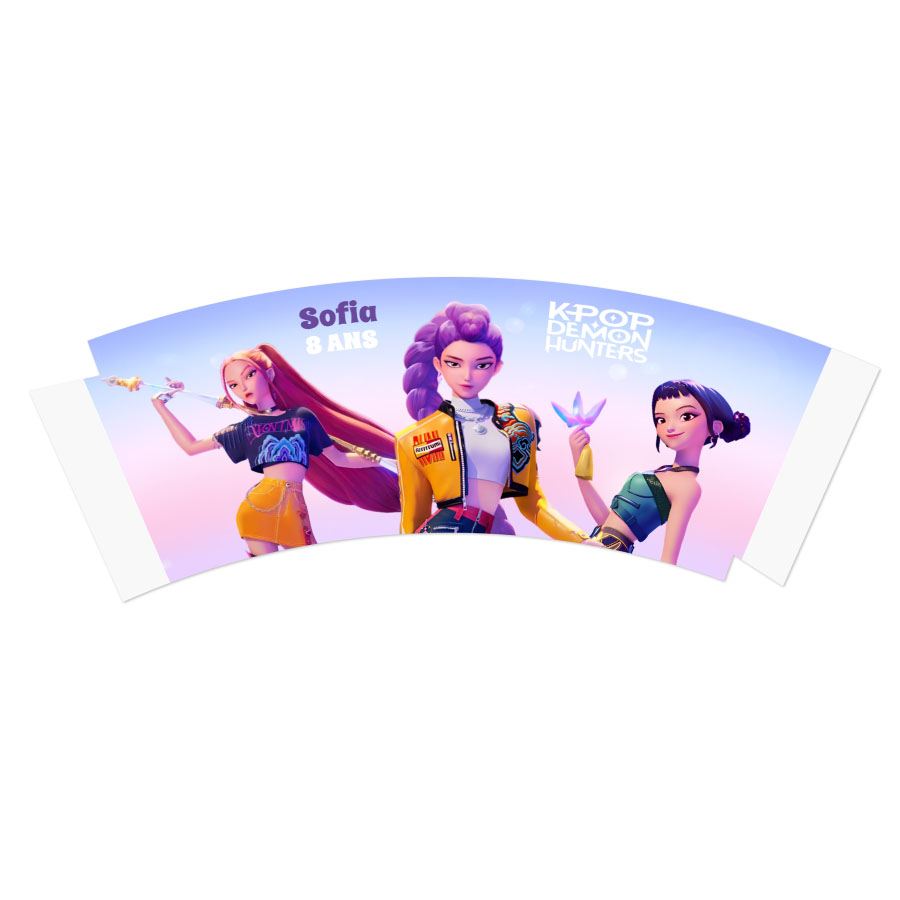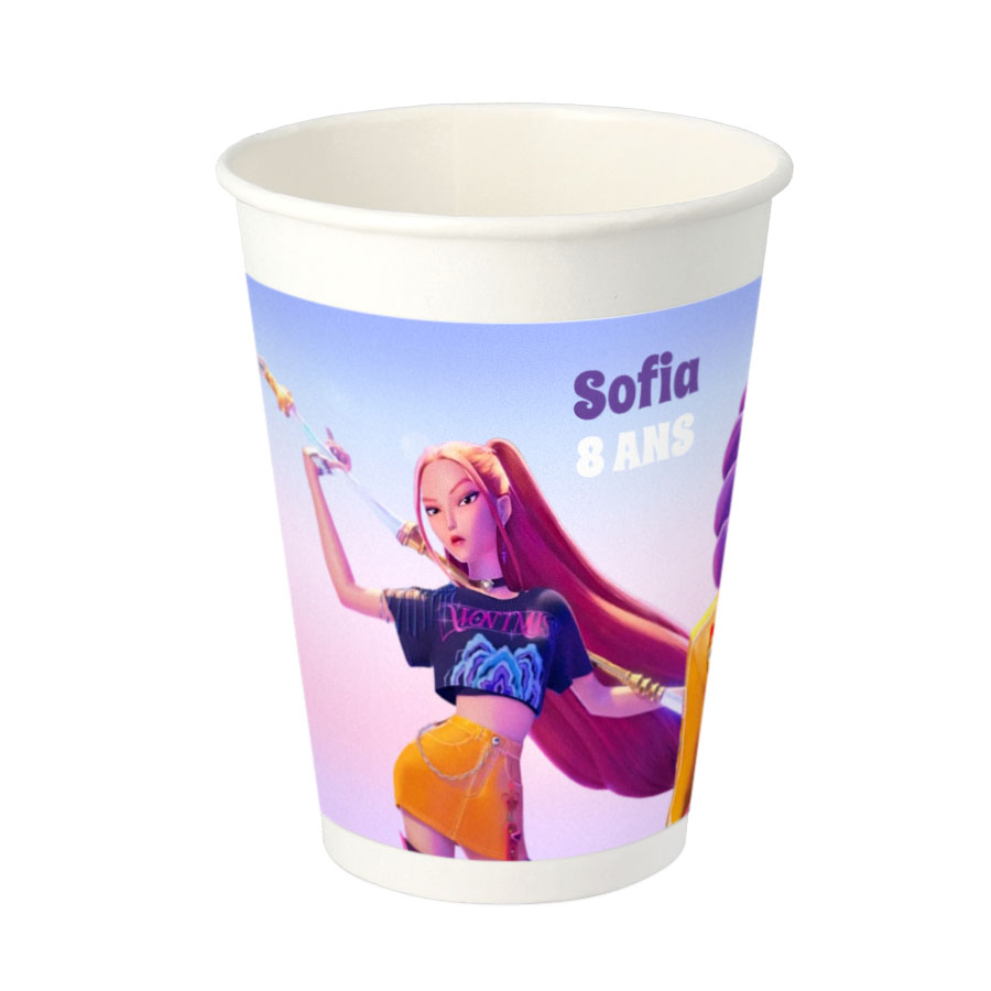 8 gobelets KPop Demon Hunters Pastel à personnaliser avec son prénom, pour un goûter d'anniversaire vraiment unique.