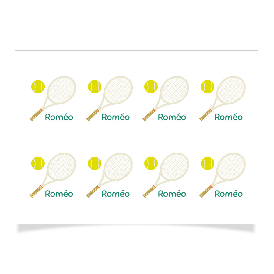 Une planche de 8 tatouages éphémères Tennis à personnaliser à son prénom, son âge ou la date de la fête, et à offrir à chaque invité en souvenir ou pour faire un atelier tatouage lors d'un super anniversaire !